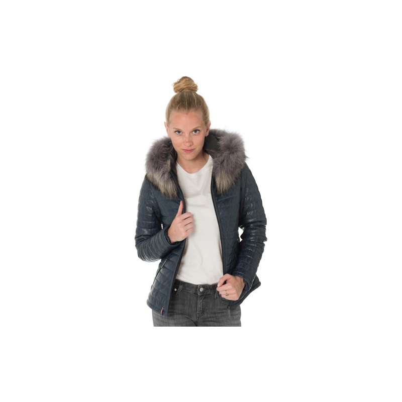 Cuir de mouton. Fourrure veritable de raton laveur.