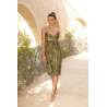 -Robe très légère vert kaki avec brettelles ,marqué par une ceinture pailleté au buste accompagné de son châle